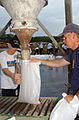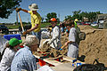 Sandbag operation at Venice Beach pier in California. September 30, 2010.