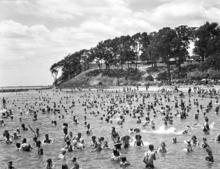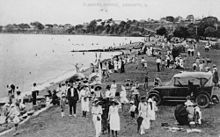 Sandgate boasted clean beaches that were a popular weekend destination, with thousands of people visiting from Brisbane to escape the heat.[13] Boating, swimming and golf were the most common sporting activities. Moora Park (27°19′27″S 153°05′06″E / 27.3243°S 153.0849°E) was the location for dances and open-air films.[20]