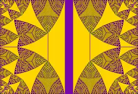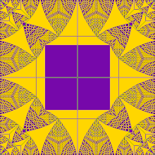 A popular special case of this model is given when the initial configuration is zero for all vertices except the origin. If the origin carries a huge number of grains of sand, the configuration after relaxation forms fractal patterns (see figure). When letting the initial number of grains at the origin go to infinity, the rescaled stabilized configurations were shown to converge to a unique limit.[7][8]
