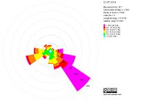 Wind rose showing distribution of wind speed and direction for Sandspit Airport for the year 2016.