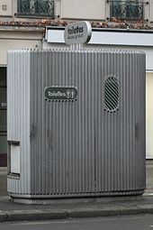Sanisette (French pronunciation: [saniˈzɛt]) is a registered trademark for a self-contained, self-cleaning, unisex, public toilet pioneered by the French company JCDecaux. These toilets (and other similar toilets) are a common sight in several major cities of the world, but they are perhaps most closely associated with the city of Paris, where they are ubiquitous. In the United Kingdom they (along with automated public conveniences of other brands) are known informally as "Superloos".[1][2]