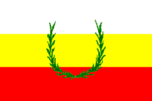 The flag is divided horizontally into three stripes; white at the top, yellow in the center and red at the bottom, and may be decorated with sugar cane stems.[23]