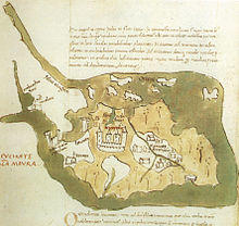Information continues to be sparse during the middle Byzantine period. The island is attested as a bishopric at the Fourth Council of Constantinople in 879, and was raised to archbishopric under Emperor Leo VI the Wise (r. 886–912).[10] Administratively, it was likely part of the Theme of Cephallenia.[10] Liutprand of Cremona visited the island during his 968 embassy to Constantinople, in 1099 it was raided by Dagobert of Pisa, it is mentioned in al-Idrisi's geography in the mid-12th century.[10]