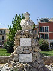 Following the end of the Republic of Venice in 1797, Lefkada, like the other Venetian Ionian Islands, was occupied by the French, who held it until a Russo-Turkish expedition under Fyodor Ushakov captured it in 1799.[28] In 1800, the Septinsular Republic was established, a Russian protectorate under de jure Ottoman suzerainty. The Russian Empire employed troops recruited from fugitive klephts and armatoloi in the Ionian Islands, particularly of Lefkada. Among these were captains Anastasios Tselios and Apostolos Levendakis, the latter who already in 1802 offered to raise a company of 60 fighters on Lefkada to support the Russians.[29] Ali Pasha of Ioannina, who coveted possession of the Ionian Islands, besieged Lefkada in 1807. For this purpose he erected two forts on the mainland shore, the Tekke Castle and the St. George's Castle, but his attacks on the Castle of Santa Maura were successfully repulsed the local Russian and Greek forces of the Septinsular Republic.[26][30] French rule was restored in 1807, after the Treaty of Tilsit, but in 1810, the British captured the island.[31][32] In 1815, Great Britain set up the United States of the Ionian Islands as a protectorate, including Lefkada.