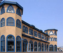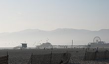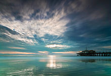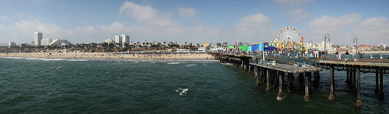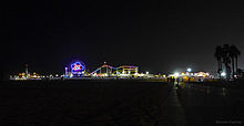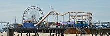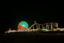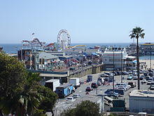 The Santa Monica Pier is a large double-jointed pier at the foot of Colorado Avenue in Santa Monica, California, United States. It contains a small amusement park, concession stands, and areas for views and fishing.[2][3]