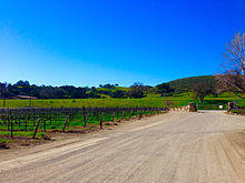 The Santa Ynez Valley is located in Santa Barbara County, California, between the Santa Ynez Mountains to the south and the San Rafael Mountains to the north. The Santa Ynez River flows through the valley from east to west. The Santa Ynez Valley is separated from the Los Alamos Valley, to the northwest, by the Purisima Hills, and from the Santa Maria Valley by the Solomon Hills.[1][2] The Santa Rita Hills separate the Santa Ynez Valley from the Santa Rita and Lompoc Valleys to the west.[3][4][5]