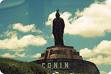 The foundation of the Spanish city of Santiago de Querétaro is pegged to 25 July 1531 when Spaniard Hernán Pérez Bocanegra y Córdoba arrived with the allied Otomi leader Conín (later named Hernando de Tapia) who was the administrative head of the Otomi peoples living in Aztec controlled territory.[3] On this date, the Spanish and their Nahuan allies were battling the local insurgent Otomi and Chichimecas at a hill now known as Sangremal and which was called Ynlotepeque and considered sacred in pre-Hispanic times. Chronicles of this event, such as that written by Friar Isidro Félix de Espinoza, state that the Chichimeca were at the point of winning when a total eclipse of the sun occurred. This supposedly scared the Chichimeca and the Spanish claimed to have seen an image of Saint James (the patron saint of Spain) riding a white horse carrying a rose-colored cross. This event caused the Chichimeca to surrender.[6] This event is why the city is called Santiago (Saint James) de Querétaro, with James as patron saint.[3][12] A stone cross imitating the one the Spanish supposedly saw was erected on the hill, which later was accompanied by a church and monastery.[3]