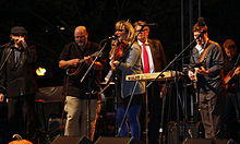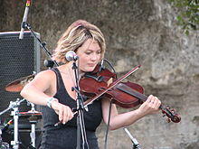 In late January and early February 2010, Watkins undertook a short tour with Jerry Douglas and Aly Bain in Scotland and England under the "Transatlantic Sessions" banner, culminating in a performance in the Royal Festival Hall in London on February 6, 2010. In June 2010, Watkins appeared on the Nerdist podcast as a musical guest, performing her best-known solo song, "Long Hot Summer Days" (a John Hartford cover). Later that summer, she participated in the Summer Love Tour with Garrison Keillor in venues across the United States.[14] She guest hosted Keillor's show, A Prairie Home Companion, on January 15, 2011.[15] Watkins contributed fiddle, guitar, percussion, and vocals on The Decemberists' 2011 tour.[16] Also in 2011, she (and her brother Sean) began to perform as a musician and singer in the humor/retro-radio podcast "Thrilling Adventure Hour".