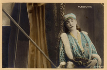 When she returned to Paris, she was offered a new role in Fédora, a melodrama written for her by Victorien Sardou. It opened on 12 December 1882, with her husband Damala as the male lead, and received good reviews. Critic Maurice Baring wrote, "a secret atmosphere emanated from her, an aroma, an attraction, which was at once exotic and cerebral ... She literally hypnotized her audience."[88] Another journalist wrote, "She is incomparable ... The extreme love, the extreme agony, the extreme suffering."[89] However, the abrupt end of her marriage shortly after the premiere put her back into financial distress. She had leased and refurbished a theater, the Ambigu, specifically to give her husband leading roles, and made her 18-year-old son Maurice, who had no business experience, the manager. Fédora ran for just 50 performances and lost 400,000 francs. She was forced to give up the Ambigu, and then, in February 1883, to sell her jewelry, her carriages, and her horses at an auction.[90]