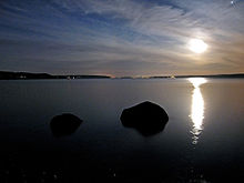 Saratoga Passage was named by Charles Wilkes, during the Wilkes Expedition of 1838–1842, for the Saratoga, the flagship of Thomas MacDonough during the Battle of Lake Champlain of the War of 1812. Wilkes had named Camano Island MacDonough Island, to honor the naval commander, but that name was removed when Henry Kellett reorganized the official British Admiralty charts in 1847. Wilkes' name MacDonough was changed to Camano to honor the Spanish explorer Jacinto Caamaño. Wilkes' name Saratoga Passage was retained.[1] George Vancouver had previously, in 1792, named Saratoga Passage "Port Gardner", in honor of Vice-Admiral Sir Alan Gardner. Today the name Port Gardner survives as the bay and harbor of Everett. Port Susan, the water east of Camano Island, also given by Vancouver, survives and honors Lady Gardner, Sir Alan's wife.[2]
