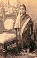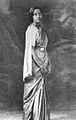 The Nivi style drape was created during the colonial era of Indian history in order to create a fashion style which would conform to the Victorian-era sensibilities present at the time in regards to fashion. Jnanadanandini Devi, sister-in-law of Bengali polymath Rabindranath Tagore, crafted the Nivi drape and borrowed the blouse and petticoat as a means of fitting in to the colonial-era society in which modesty was paramount while maintaining a distinct Indian identity.[70][71] During the colonial period of Indian history, dresses such as the sari were seen as "immodest", and as such Indian fashion changed to adapt to these new set of moral sensibilities in society. Styles such as the Nivi were created to blend foreign sensibilities and Indian dress styles together, in response to disapproval of wearing Western-style clothing in India. The blouse and petticoat are not as prevalent in the modern-day as they used to be during the colonial era, however.[72]