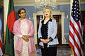 Similarly, the female politicians of India and Bangladesh wear the sari in a professional manner. Bangladeshi politicians usually wear saris with long sleeve blouse while covering their midriff. Some politicians pair up saris with Hijab or Shawl for more coverage.