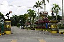 King George VI square was established in 1953 as a recreational spot for Sarikei people. Sarikei civic centre was later built near the square in 1987.[1][note 28] Sarikei Civic Centre has been hosting gatherings and events since 1988.[29] There is a Sarikei jetty where the visitors can watch speedboats, ferries, and longboats at the dock. Sarikei Lake Garden was opened to public since 1995. The park includes a fish pond, fountains, pedestrian walkways, and children playground.[30] The Sebangkoi forest park is located at 23 km away from town. Sebangkoi Deer Farm is located opposite to the forest park.[31] Rumah Nyuka Longhouse was built in 1955. It is located at 17 km away from Bayong junction (Betong-Sarikei highway). Visitors can tap rubber in the morning, collect fruits, jungle trekking, and swimming in two nearby waterfalls.[32]