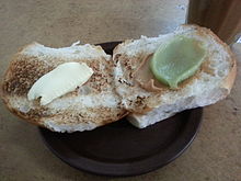 - "Kompyang" : pronounced kom-pyang; Jian'ou dialect: Guang-biang, a local hard & dry, mild salty bread. Best eaten hot. Besides Sarikei,[37] kompyang also can find in Sibu town, Sitiawan,[38] Ayer Tawar,[39] Sepang & Yong Peng[40][41] towns of Peninsular Malaysia where predominated by Fuzhou Clan, Fuzhou city of China[42] and even far west to Jammu and Kashmir (Srinagar) of India also selling similar kind of bread like this.