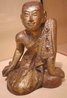 ![]() Statue of Śāriputra, depicting his "golden complexion". | |