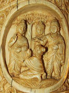 - ^ In one version of the Chinese Buddhist canon, Śāriputra first went to the Buddha alone after being converted by Aśvajit, and then asked the Buddha for permission to go find his friend.[32]