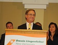 In 2008, Calvert announced his intention to leave the leadership of the Saskatchewan NDP and a leadership race commenced with declared candidates including Moose Jaw MLA Deb Higgins, former Deputy Premier and farmer, Dwain Lingenfelter, doctor and community activist Ryan Meili and former party President and Regina lawyer, Yens Pedersen. Lingenfelter was elected party leader June 6, 2009.