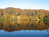 The small yet deep Herthasee in the national park as part of Sassnitz, with the Slavic hill fort Herthaburg at its banks