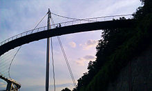 In July 2007, a 274-metre-long (899 ft) suspension bridge for pedestrians was inaugurated, which links the center of Sassnitz between the station, Rügen Gallery, spa hotel and main street with the port of Sassnitz.