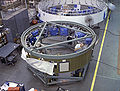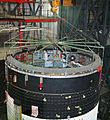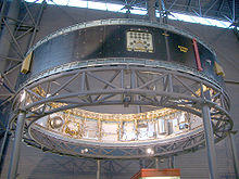The Saturn V instrument unit is a ring-shaped structure fitted to the top of the Saturn V rocket's third stage (S-IVB) and the Saturn IB's second stage (also an S-IVB). It was immediately below the SLA (Spacecraft/Lunar Module Adapter) panels that contained the Lunar Module. The instrument unit contains the guidance system for the Saturn V rocket. Some of the electronics contained within the instrument unit are a digital computer, analog flight control computer, emergency detection system, inertial guidance platform, control accelerometers, and control rate gyros. The instrument unit (IU) for Saturn V was designed by NASA at Marshall Space Flight Center (MSFC) and was developed from the Saturn I IU.[1] NASA's contractor to manufacture the Saturn V Instrument Unit was International Business Machines (IBM).[2]