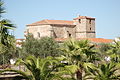 St John the Baptist´s church of Saucedilla, with the Sierra de Gredos snow-covered behind | |