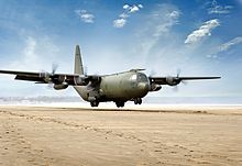 Saunton Sands Hotel overlooks the beach at the northern end. The beach is cordoned off a few times a year and the beach used as an airstrip for military transport planes, usually Lockheed C-130 Hercules of the Royal Air Force, to practice STOL beach landings and take offs.[3] Flying kites is prohibited, accordingly, on part of the beach.[4]