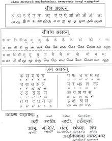 Recently, Saurashtrians adopted Devanagari Script for writing.[11] The alphabet chart containing vowels, consonants and the compound letters in Devanagari script are as follows:
