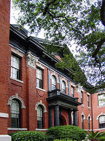 SCAD's efforts to work with the city of Savannah to preserve its architectural heritage[21] include restoring buildings for use as college facilities, for which it has been recognized by the American Institute of Architects, the National Trust for Historic Preservation, the Historic Savannah Foundation and the Victorian Society of America.[22] The college campus includes 67 buildings throughout the grid-and-park system of downtown Savannah. Many buildings are on the famous 21 squares of the old town,[23] which are laden with monuments, live oaks and a Southern-Gothic feel.
