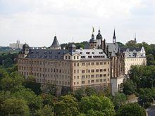 The duchy had its origins in the medieval Burgraviate of Altenburg in the Imperial Pleissnerland (Terra Plisensis), a possession of the Wettin Margraves of Meissen since 1243. Upon a partition treaty of 1485, Altenburg fell to Ernst, Elector of Saxony, the progenitor of the Ernestine Wettins.[2] After the Division of Erfurt in 1572 among Duke Johann Wilhelm of Saxony and his nephews, Altenburg fell to his Duchy of Saxe-Weimar.