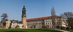 His son Ernest Augustus II, who succeeded him in 1748, died in 1758, whereafter Empress Maria Theresa appointed his young widow, Duchess Anna Amalia, regent of the country and guardian of her infant son, Charles Augustus.[1] The regency of energetic Anna Amalia and the reign of Charles Augustus, who was raised by the writer Christoph Martin Wieland, formed a high point in the history of Saxe-Weimar.[1] Both intelligent patrons of literature and art, Anna Amalia and Charles Augustus attracted to their court the leading German scholars, including Johann Wolfgang von Goethe, Friedrich Schiller and Johann Gottfried Herder, and made their residence Weimar an important cultural center in an era referred to as Weimar Classicism.
