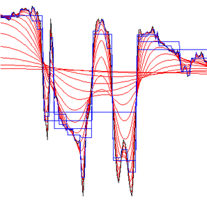 Scale-space segmentation was extended in another direction by Lyon[16] to vector-valued functions of time, where the vector derivative does not have maxima and minima, and the second derivative does not have zero crossings, by putting segment boundaries instead at maxima of the Euclidean magnitude of the vector derivative of the smoothed vector signals. This technique has been applied to segmentation of speech and of text.[17]
