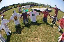 The 'pumpkin people' come in the fall months in the valley region of Nova Scotia, Canada. They are scarecrows with pumpkin heads doing various things such as playing the fiddle or riding a wooden horse. Hickling, in the south of Nottinghamshire, is another village that celebrates an annual scarecrow event. It is very popular and has successfully raised a great deal of money for charity.[14] Meaford, Ontario, has celebrated the Scarecrow Invasion since 1996.