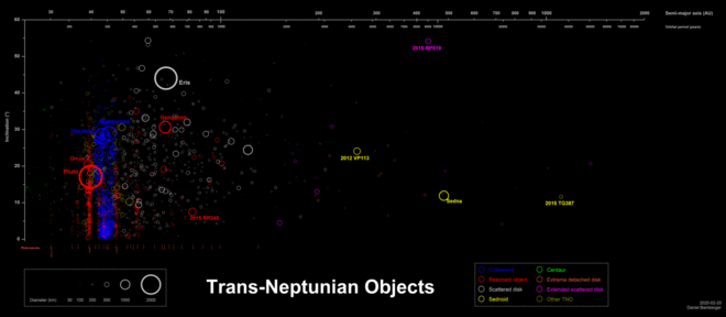 - ^ a b Lykawka, Patryk Sofia; Mukai, Tadashi (2007). "Dynamical classification of trans-Neptunian objects: Probing their origin, evolution, and interrelation". Icarus. Kobe. 189 (1): 213–232. Bibcode:2007Icar..189..213L. doi:10.1016/j.icarus.2007.01.001.