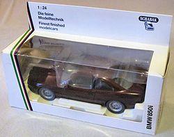 Later diecast cars were offered in 1:24 scale – so Schabak was one of the earlier model manufacturers to move up to the larger sizes, in the mid-1980s. Vehicles offered in the larger scale were: Ford Sierra Cosworth (the Sierra also offered in police livery), Granada, Orion, and Fiesta XR2i; Audi 80 Quattro, BMW 750, BMW 850, and Z1; Mercedes S Class, and VW Golf VR6.