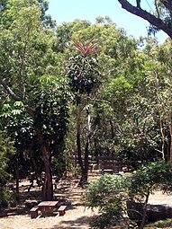 The up to 1,000 flowers produced by the plant generate large amounts of nectar, attracting nectar-eating birds that pollinate them. The fruits are eaten by many birds and animals including musky rat-kangaroos, red-legged pademelons and spectacled flying foxes.[4] Its leaves are a favourite food of the Bennett's tree-kangaroo.[5][6][7]