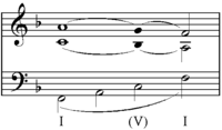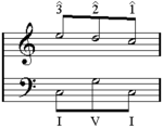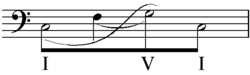 The canonic form of the bass arpeggiation is I–V–I. The second interval, V–I, forms under