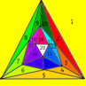 Sommerville also considers the case of a simplex in four dimensions:[2] "The Schlegel diagram of simplex in S4 is a tetrahedron divided into four tetrahedra." More generally, a polytope in n-dimensions has a Schegel diagram constructed by a perspective projection viewed from a point outside of the polytope, above the center of a facet. All vertices and edges of the polytope are projected onto a hyperplane of that facet. If the polytope is convex, a point near the facet will exist which maps the facet outside, and all other facets inside, so no edges need to cross in the projection.
