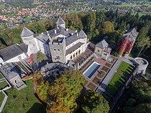 Schloss Ringberg (Ringberg Castle) is located in the Bavarian Alps, 50 km south of Munich, on a foothill overlooking the Tegernsee. Not open to the general public, it is a property of the Max Planck Society and used for conferences.