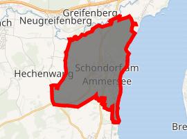 The neighboring municipalities of Schondorf are: Greifenberg in the north, Eching am Ammersee in the north-east, Utting in the south and Windach in the west.