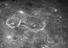 Apollo 16 Mapping Camera image of Schubert crater (above right of center) and Back crater (below left of center) | |