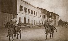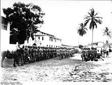 Schutztruppe (German: [ˈʃʊtsˌtʁʊpə] , lit. Protection Force) was the official name of the colonial troops in the African territories of the German colonial empire from the late 19th century to 1918. Similar to other colonial armies, the Schutztruppen consisted of volunteer European commissioned and non-commissioned officers, medical and veterinary officers. Most enlisted ranks were recruited from indigenous communities within the German colonies or from elsewhere in Africa.[1]