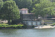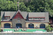 Established in 1867 and located at No. 5 Boathouse Row, Crescent Boat Club was one of the first members of the Schuylkill Navy.[36] The club began to be known as Crescent when Pickwick Barge Club and Iona Barge Club merged.[37][38][39] Crescent won the double sculls in the first National Association of Amateur Oarsmen regatta, currently known as the USRowing Club National Championships.[40] After World War II, the club, like many others on Boathouse Row, suffered a dramatic decrease in membership and turned the operation of the boathouse over to the La Salle Rowing Association, which controlled it from 1951 to 1960.[34] By 1974 the boathouse was vacant, and was not returned to prosperity until it came under the reins of John Wilkins.[41][42] The club is now affiliated with Philadelphia University's rowing team[43] and Roman Catholic High School rowing team, which supplies most of Crescent's summer rowing membership. Crescent has the smallest membership to the Schuylkill Navy on Boathouse Row.[44]