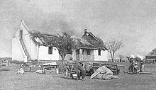 Lord Kitchener applied scorched-earth policy towards the end of the Second Boer War (1899–1902). The Boers, refusing to accept military defeat, adopted guerrilla warfare despite the capture of both of their capital cities. As a result, the British ordered the destruction of the farms and the homes of civilians to prevent the Boers who were still fighting from obtaining food and supplies.[40] That destruction left women and children without means to survive since crops and livestock had also been destroyed.[41]