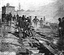 When General Ulysses Grant's forces broke through the defenses of Richmond, Virginia, Confederate President Jefferson Davis ordered the destruction of Richmond's militarily-significant supplies. The resulting conflagration destroyed many buildings, most of which were commercial, as well as Confederate warships docked on the James River. Civilians in panic were forced to escape the fires that had been started.