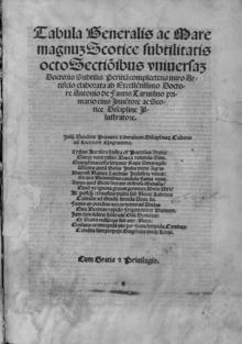 Scotism is the philosophical and theological system or school named after 13th century Scottish philosopher-theologian John Duns Scotus. The word comes from the name of its originator, whose Opus Oxoniense was one of the most important documents in medieval philosophy and Roman Catholic theology, defining what would later be declared the Dogma of the Immaculate conception by Pope Pius IX in his constitution Ineffabilis Deus on 8 December 1854.[1][2]