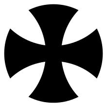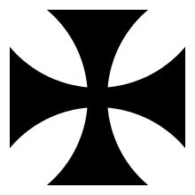 The various sources state that the terminal stones were square stones bearing the royal arms of England and Scotland.[8][13] However, the Commissioners stated that they should bear "...a cross pattee at each end and styled 'this is the least and fynal lyne of the particion concluded xxiiij Septembris 1552.' "[8] A cross pattée is a type of cross that has arms which are narrow at the centre, and broader at the perimeter. The name comes from the fact that the shape of each arm of the cross was thought to resemble a paw (French patte). There are several variants of the cross pattée, but it is not known whether these were ever actually made for installation at the dike's terminal points. What fate befell the stones that were made is not recorded. The 19th-century OS maps mark a number of boundary stones which are very unlikely to be contemporary with the terminal stones.