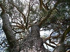 The bark is thick, scaly dark grey-brown on the lower trunk, and thin, flaky and orange on the upper trunk and branches.[11] The habit of the mature tree is distinctive due to its long, bare and straight trunk topped by a rounded or flat-topped mass of foliage. The lifespan is normally 150–300 years, with the oldest recorded specimens in Lapland, Northern Finland over 760 years.[5][6][7][13]