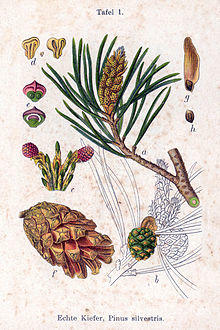 Over 100 Pinus sylvestris varieties have been described in the botanical literature, but only three or four are now accepted.[14] They differ only minimally in morphology, but with more pronounced differences in genetic analysis and resin composition. Populations in westernmost Scotland are genetically distinct from those in the rest of Scotland and northern Europe, but not sufficiently to have been distinguished as separate botanical varieties. Trees in the far north of the range were formerly sometimes treated as var. lapponica, but the differences are clinal and it is not genetically distinct.[5][6][8][15][16][17][18][19][20][21]