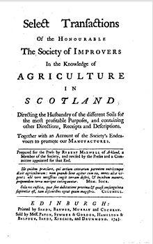 - ^ a b c d e J. D. Mackie, B. Lenman and G. Parker, A History of Scotland (London: Penguin, 1991), ISBN 0140136495, pp. 288–91. Gilles Denis, "Sociétés d'agriculture et diffusion des Lumières" in Frank Salaün and Jean-Pierre Schandeler, Enquête sur le Construction des Lumières (Centre international d'étude du XVIIIe siècle: Ferney-Voltaire, 2018), pp. 108-109.