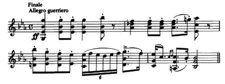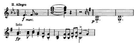 It is a four-movement fantasy on Scottish folk melodies. The first movement is built on "Through the Wood Laddie".[2] This tune also appears at the end of the second and fourth movements. The second movement is built around "The Dusty Miller", the third on "I'm A' Doun for Lack O' Johnnie", and the fourth movement includes a sprightly arrangement of "Hey Tuttie Tatie", the tune in the patriotic anthem "Scots Wha Hae" (with lyrics by Robert Burns).